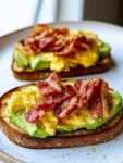 This Bacon, Egg, and Avocado Toast is simple and fast. It has crunchy bacon, soft egg, and creamy avocado on toast. You can make it for breakfast or a quick lunch. It tastes good and fills you up.